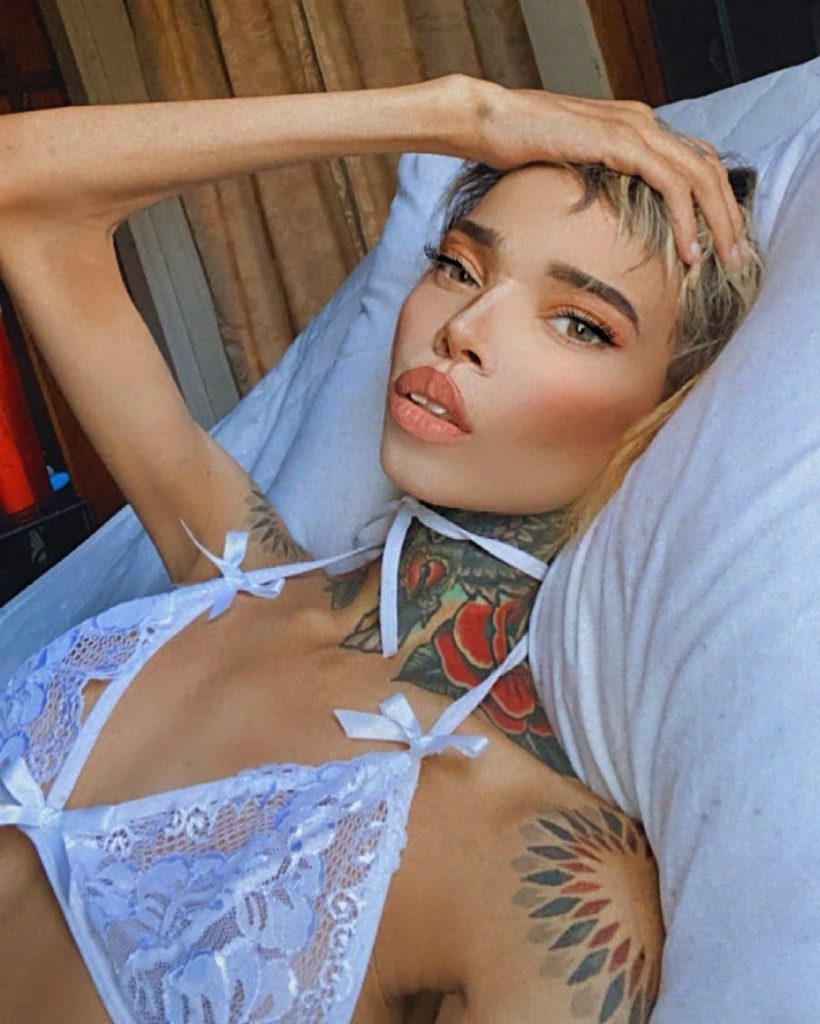 Gena Tew обладает запоминающейся внешностью с множеством татуировок и пирсингом. В интернете распространены её фотографии, включая откровенные, что привлекает внимание аудитории. Ее параметры — рост 163 см и вес 41 кг.